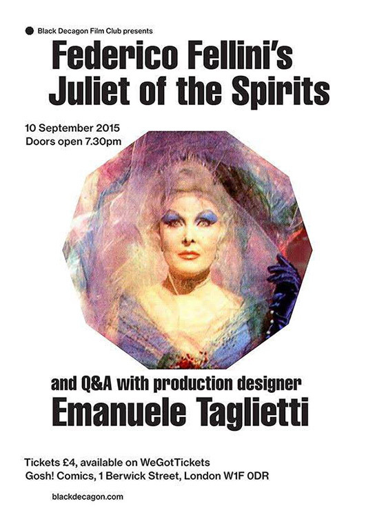 While on his first trip to the UK renowned comic cover artist Emanuele Taglietti will be giving a talk and signing copies of his book Sex and Horror: The Art of Emanuele Taglietti at Gosh! Comics. The talk will be followed by a screening by Black Decagon Film Club of Federico Fellini’s first colour feature, the adult fairy tale Juliet of The Spirits (1965), on which Emanuele Taglietti was one of the production designers.